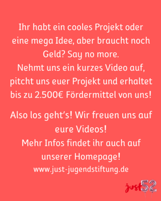 Schaut gerne mal auf der Homepage vorbei und erzählt es vor allem weiter! https://just-jugendstiftung.de/just52/