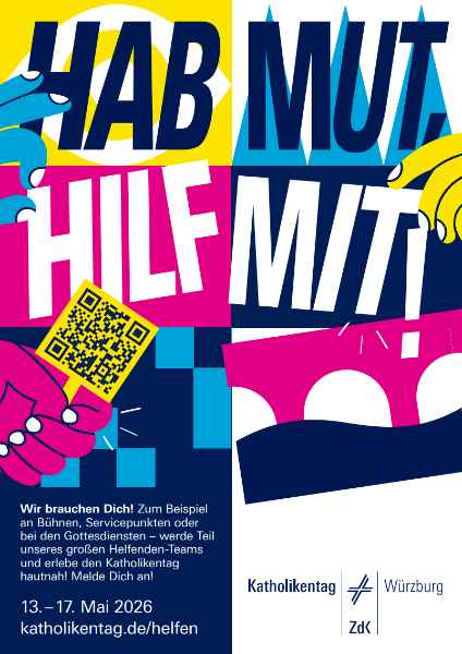 Vom 13. bis 17. Mai 2026 findet in Würzburg der nächste Katholikentag statt. Dafür werden noch viele engagierte Helfende gesucht, zum Beispiel bei der Einlasskontrolle, in der Besuchendenlenkung oder an Infoständen.